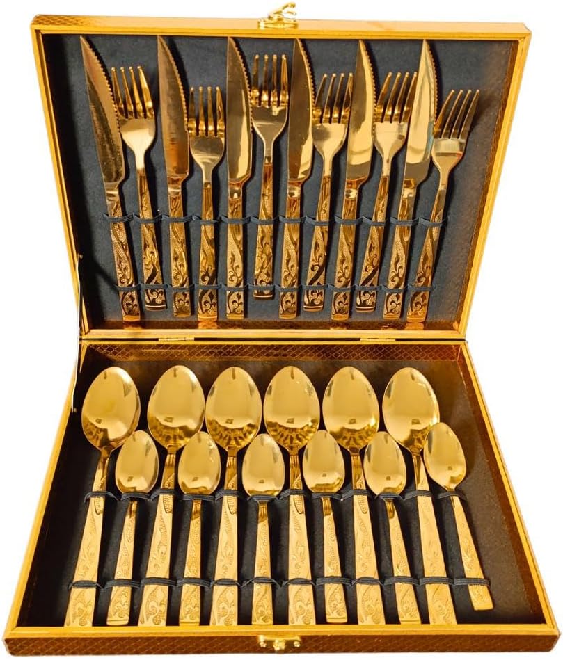 Kit Faqueiro Maleta De Talheres Inox 24 Peças Dourado Luxo Mesa Posta